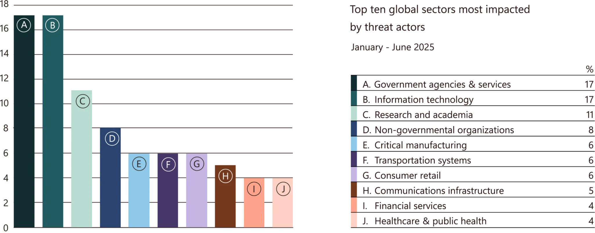 Los ataques durante 2025 se concentraron en países como Estados Unidos, Reino Unido, Israel y Alemania. Sectores con información sensible (gobierno, investigación y educación) son los más atacados, principalmente por motivaciones financieras (extorsión, ransomware y robo de datos).