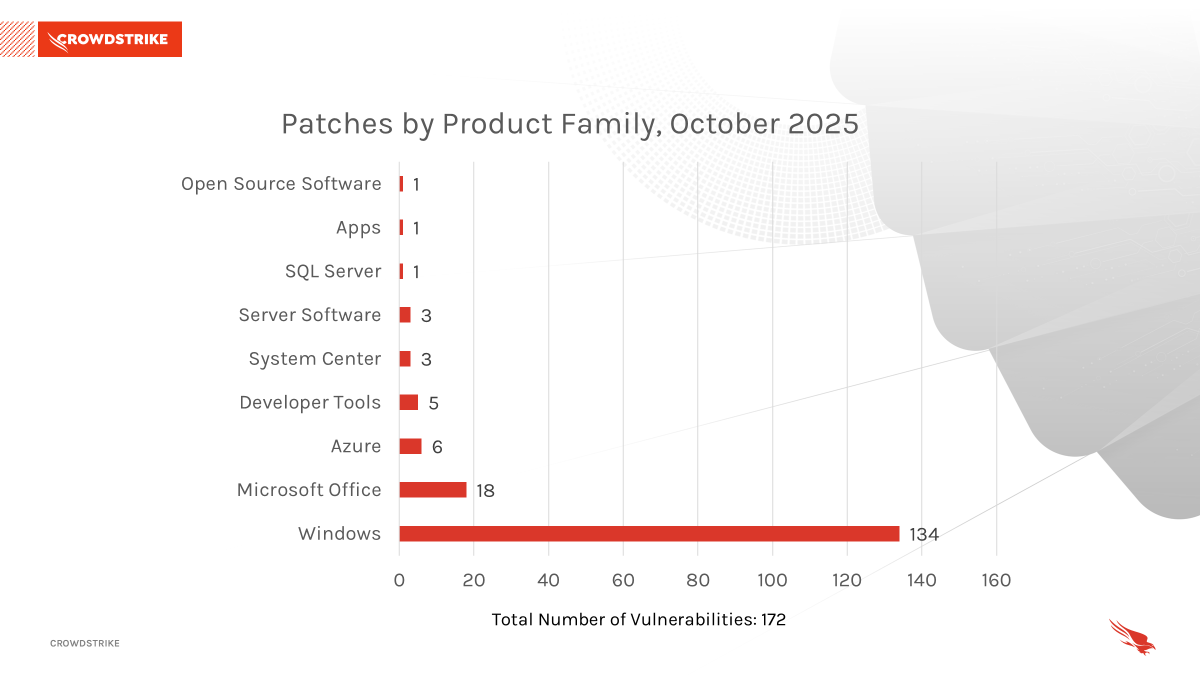 Figura 2. Desglose de las familias de productos afectadas por el Patch Tuesday de octubre de 2025.