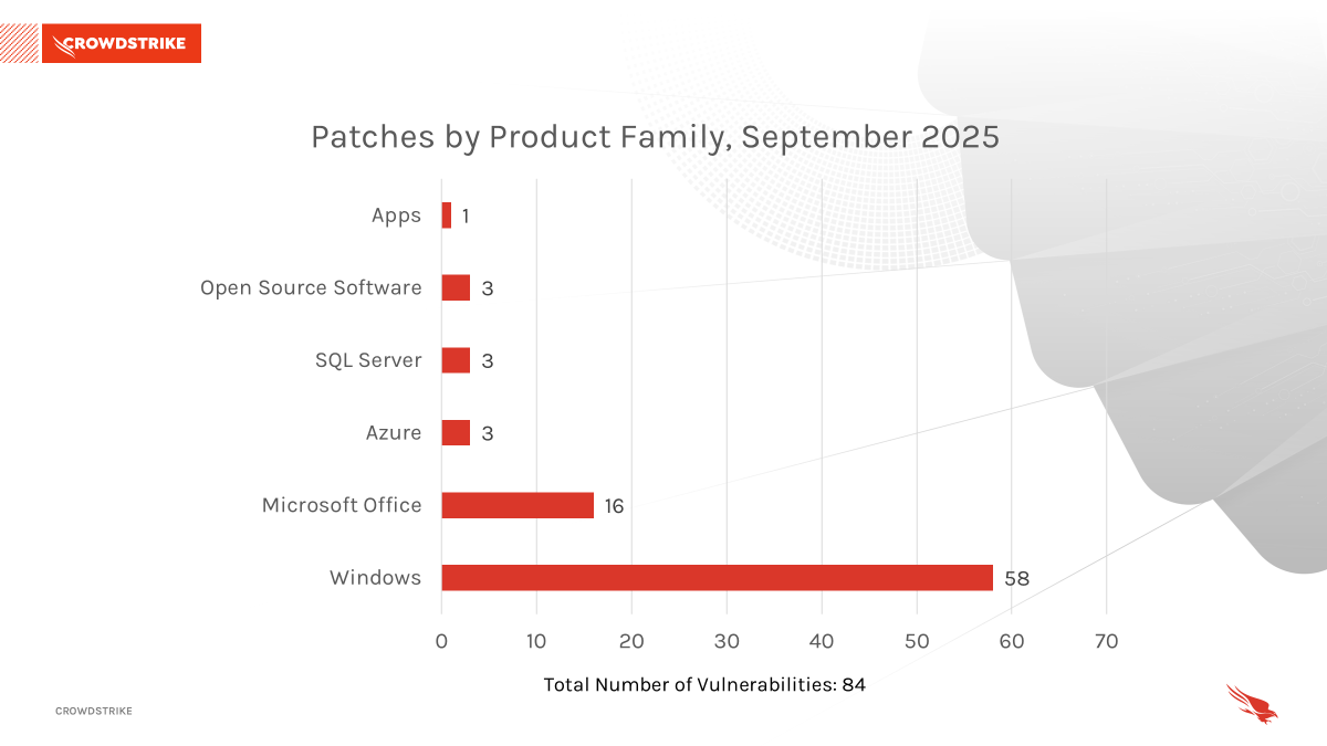 Figura 2. Desglose de las familias de productos afectadas por el Patch Tuesday de septiembre de 2025.